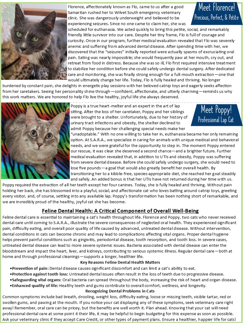 percentage of the proceeds will be donated to S.A.R.A.’s cat
